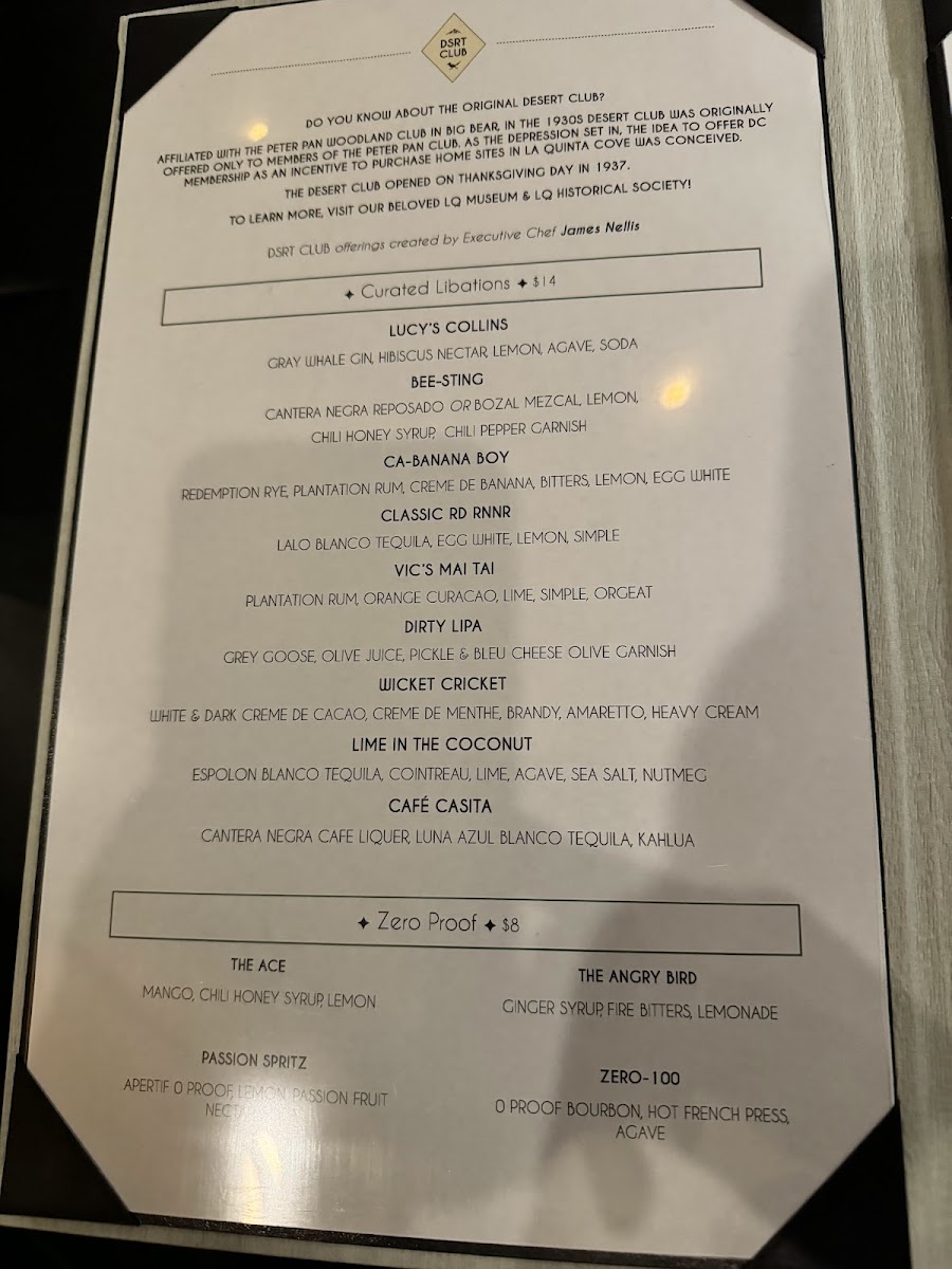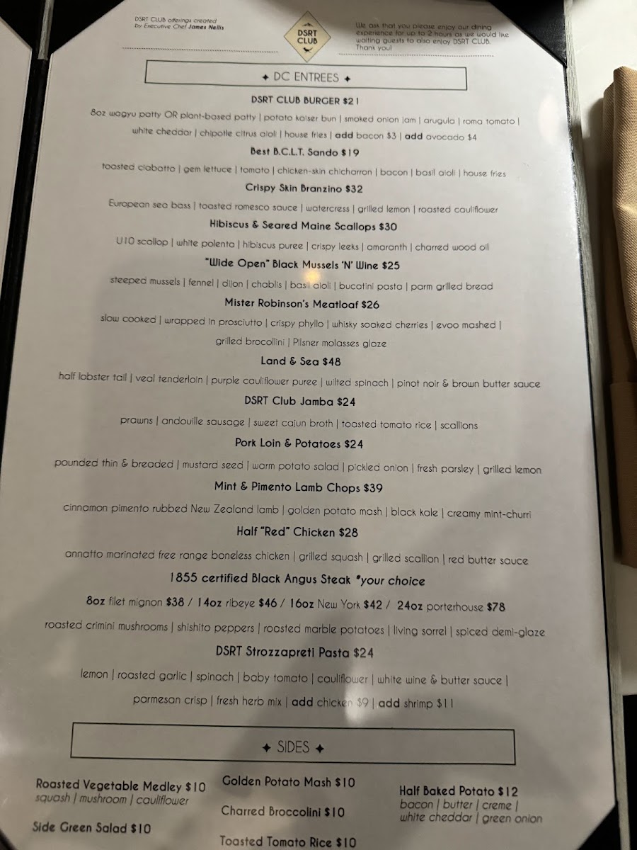 DSRT CLUB Menu