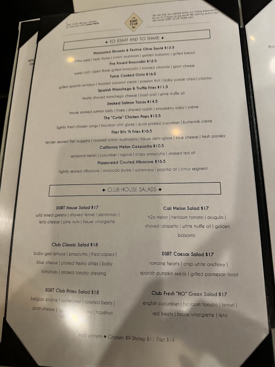 The menu at DSRT CLUB embraces a refined yet approachable style, offering a thoughtfully curated selection that balances casual dining with elegant touches. Guests can expect dishes that blend fresh, high-quality ingredients with subtle sophistication, making it easy to enjoy both relaxed lunches and leisurely dinners.